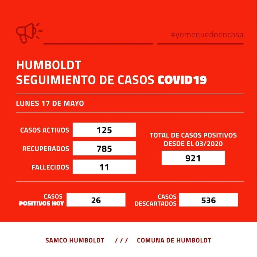 Hoy martes la mesa de salud de Pilar, anuncia 58 casos positivos y 28 a al espera de resultados. en tanto una de las localidades vecinas mas afectadas es Humboldt con 125 activos, no informa sobre el numero de los que esperan resultados.